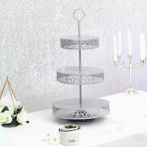 23" Silver Metal Reversible Tiered Cupcake Stand | 3 Tier Dessert Stand Cupcake Holder | Display Stand