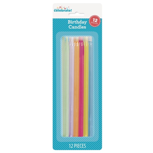 ASSORTED COLOR LONG BIRTHDAY CANDLES 12PC