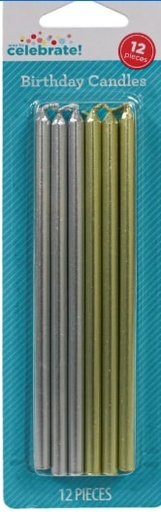 WTC SILVER/ GOLD LONG BIRTHDAY CANDLES 12PC