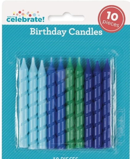 ASSORTED COLOR 10PC BIRTHDAY CANDLES (LT BLUE,ROYAL,GREEN & NAVY BLUE)