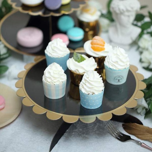 1 Tier | 13" Black Cardboard Cupcake Stand | Gold Scalloped Edge Mini Dessert Cake Holder